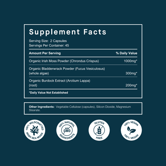 Experience the powerful benefits of our Sea Moss Tincture, expertly crafted with bladderwrack and burdock root.