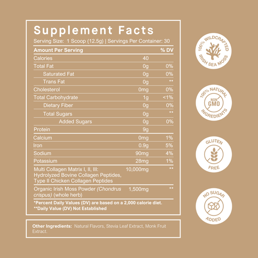 Sea moss is a type of algae that supports energy, metabolism, satiety, and overall daily wellness. Multiple servings of sea moss provides most of the vitamins and nutrients your body needs in a day to be its healthiest.